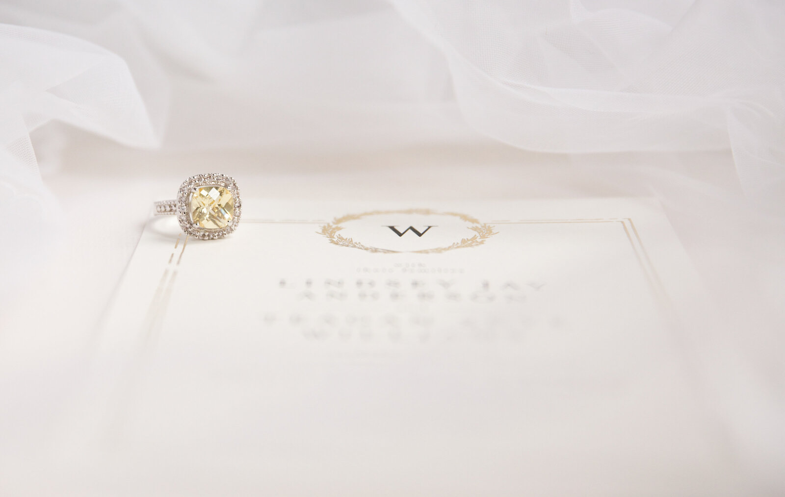 When we can, we always try to take a photo of your rings while you're getting ready. If possible, try to have your engagement ring cleaned or clean it yourself. To clean at home, soak your ring in warm water with dishwashing soap for 20 to 40 minutes. Then gently brush the stone with a soft toothbrush, rinse and repeat if needed.