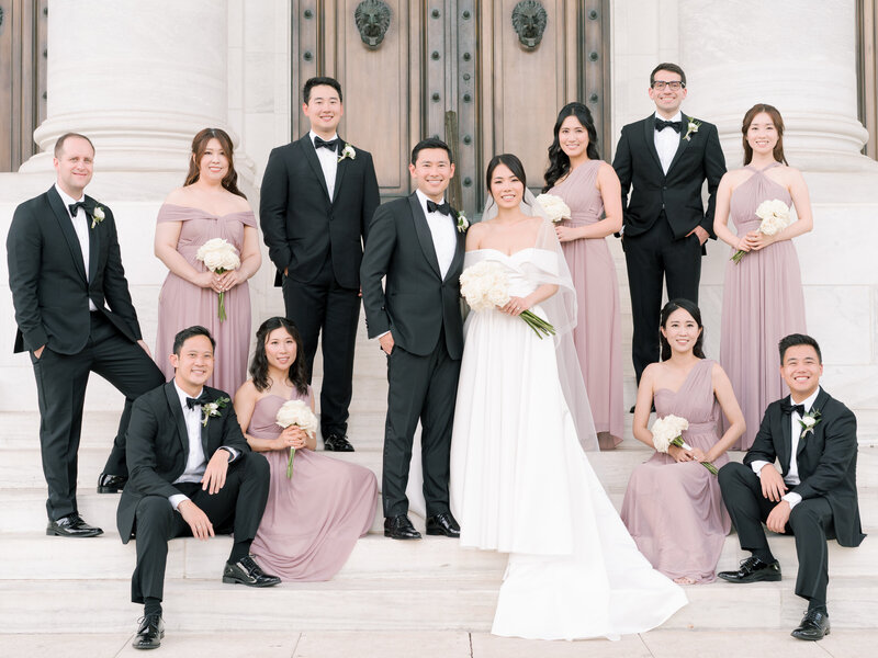 When there is no first look, the majority of the pictures have to be taken after the ceremony. Family pictures are generally done as soon as the ceremony ends because it’s the easiest time to round everyone up. Next up is full bridal party, and then bride and groom portraits. This generally runs into cocktail hour.